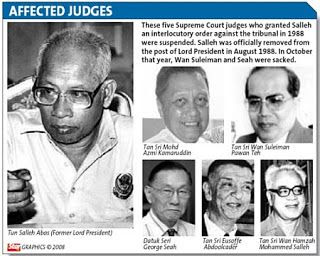 ■ 20 tahun kemudian iaitu pada 20 Jun 2008, Tun Salleh Abas yang dipecat daripada badan kehakiman pada 1988 berkata: "Kalau anda musnahkan badan kehakiman, anda memusnahkan demokrasi dan kalau anda memusnahkan demokrasi, anda terjamin dalam pemerintahan diktator."